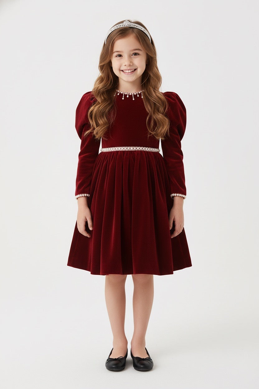 Fabric: VelvetDetails: FrockColor: MaroonGender: Girls