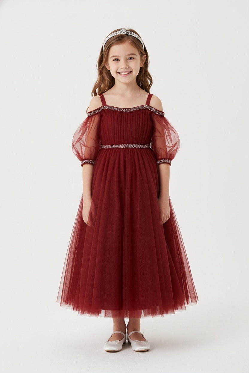 Fabric: VelvetDetails: FrockColor: MaroonGender: GirlsFor Customisation: Whats APP : 03352299901