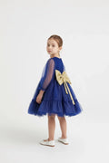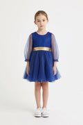 Elegant Royal Blue Frill Frock Party Wear for your baby girl.